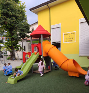 Nel cuore di San Giorgio al Tagliamento (VE), la nostra scuola accoglie bambini dai 12 mesi ai 6 anni, accompagnandoli in un percorso educativo attento, gioioso e completo.